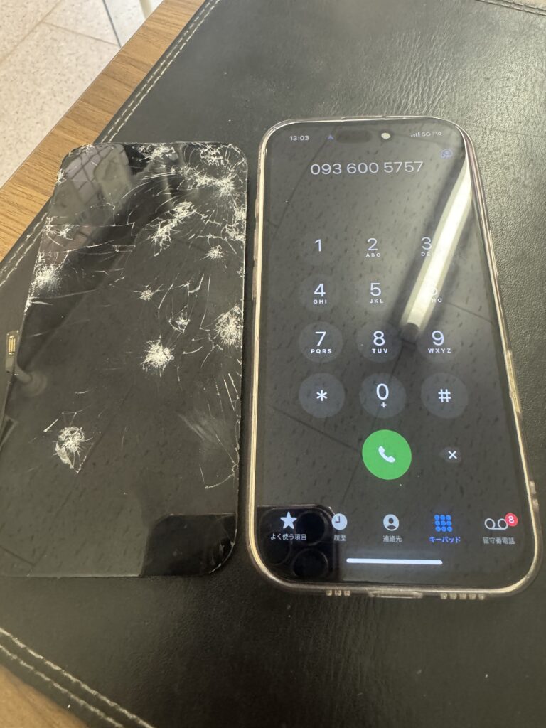 実際のご依頼でも圧倒的に多いのが、ポケットやカバンからの落下、立ち上がり時の滑落、車から降りる際の落下などです。落下の角度や衝撃の伝わり方によってはガラスは無傷なのに内部だけ壊れるケースもあります。